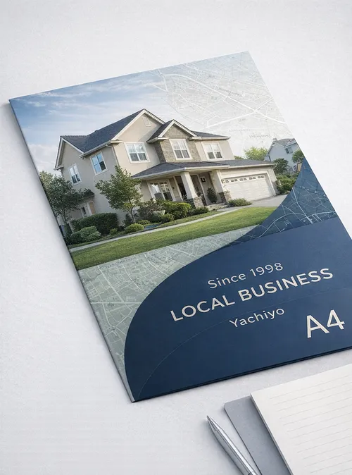 パンフレットフォルダーは、会社案内・サービス資料・見積書・事例集などを1冊に“きれいにまとめて”渡せる営業ツールです。